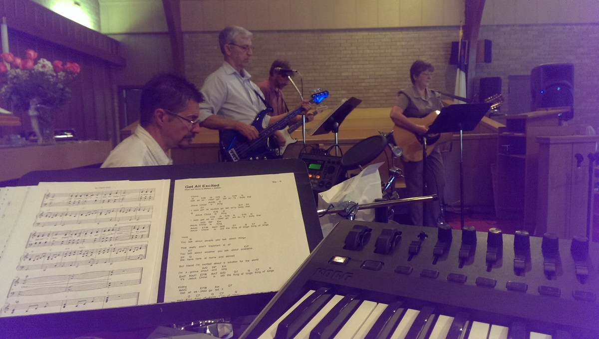 41West strives to bring a freshness to worship settings. A new fresh PA, state of the art PRO speakers and cords, authentic sounding keyboards, quality tube amps, Heil mics, and drums were all brought in for a lively worship session at Grace. The music was festive this Sunday morning with 41West and New Day, plus three members of Grace also participated on piano, violin and 12 string guitar.